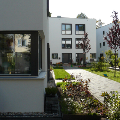 Die als dreizehn „Stadthäuser“ konzipierten Gebäude gliedern sich in städtebaulicher Anordnung um die Gemeinschaftsaußenfläche. Insgesamt wurde eine in Form, Material und Farbton schlichte und elegante Wohnsituation geschaffen. Traditionelle Bauweise und Materialien werden mit zeitgemäßer Architektur vereint, Formen bleiben vorwiegend funktional.