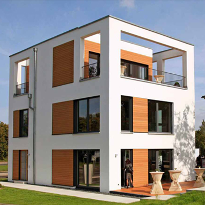 Die Planung von Musterhäusern entwickeln wir seit 2008. Die Häuser werden durch das Massivhaus- und Fertighausunternehmen Lechner Massivhaus GmbH realisiert. Mit hohem Vorfertigungsgrad werden im Systemrohbau die einzelnen Fertigteile optimal aufeinander abgestimmt. Durch die vorgefertigten, bereits für den Zusammenbau vorbereiteten Elemente des geplanten Hauses wird der Rohbau in nur wenigen Montagetagen errichtet.