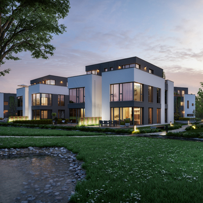 Ziel der Gestaltung war die Schaffung einer familiengerechten Wohnsituation in einer sonnigen und ruhigen Stadtlage mit Raum für soziale Begegnungen. Die 16 Doppelhaushälften gruppieren sich um eine Spielinsel mit Grünflächen und Sitzgelegenheiten. Hier soll Raum für eine nachbarschaftliche Gemeinschaft ermöglicht werden.