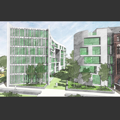 zwei sanft gewogene Wohnriegel mit Spiel von Licht und